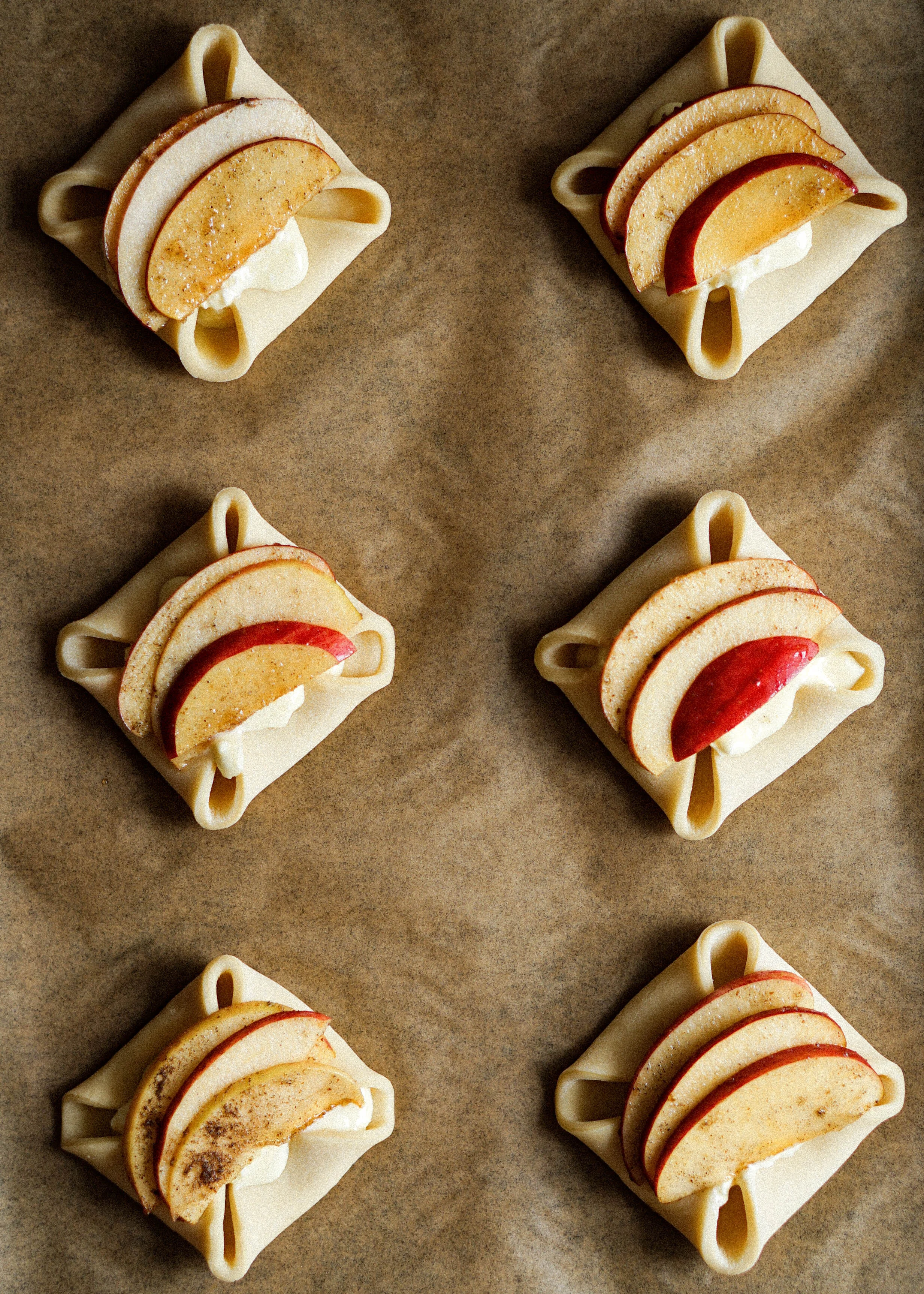 Acquiring or making your own pastry is honestly the hardest part of these danishes. The cream cheese filling is a simple mixture with sugar and an egg. And the apples are tossed with brown sugar and cardamon. Such a lovely flavor combo! I used some beautiful Autumn Glory Apples that naturally have a hint of cinnamon and caramel. The cardamon is a lovely spice and gives the danishes a woodsy note.